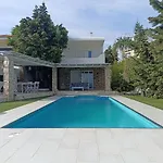 Po dni objevování města Agioi Theodoroi a jeho zajímavostí si můžete osvěžujícím způsobem zaplavat v soukromém plaveckém bazénu ve vile Villa Mykonos.